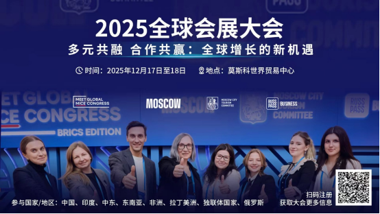 2025年全球会展大会的注册通道现已开启,可通过 Russpass Business平台(https://business.russpass.ru/en/projects-events/meet-global-mice-congress/mgmc-2025)报名,截止日期为2025年12月12日。
